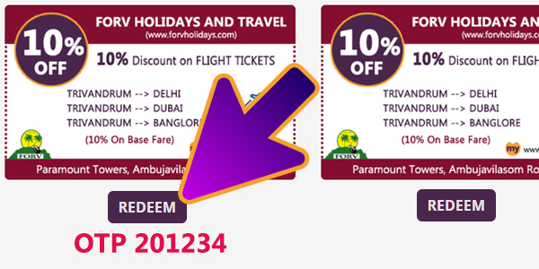 ആവശ്യമുള്ള കൂപ്പണുകളുടെ താഴെ കാണുന്ന റെഡീം ബട്ടൺ ക്ലിക്ക് ചെയ്യുക ബട്ടന്റെ താഴെ ഒരു OTP കാണിക്കും അത് കൂപ്പണിൽ കാണുന്ന ഷോപ്പിൽ കൊടുക്കുക